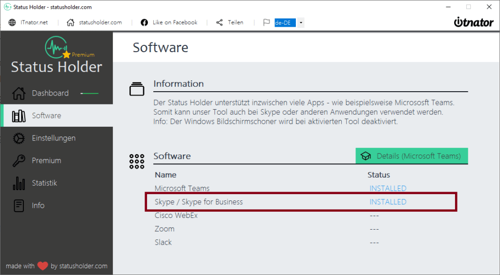 O Status Holder é gratuito e não precisa de ser instalado, uma vez que se trata de uma aplicação que se executa com um simples clique. Isto significa que não são necessários direitos de administrador e que pode ser executado num PC da empresa sem qualquer problema. Como não precisa de ser instalado, o Status Holder não aparece na lista de software instalado do departamento de TI.